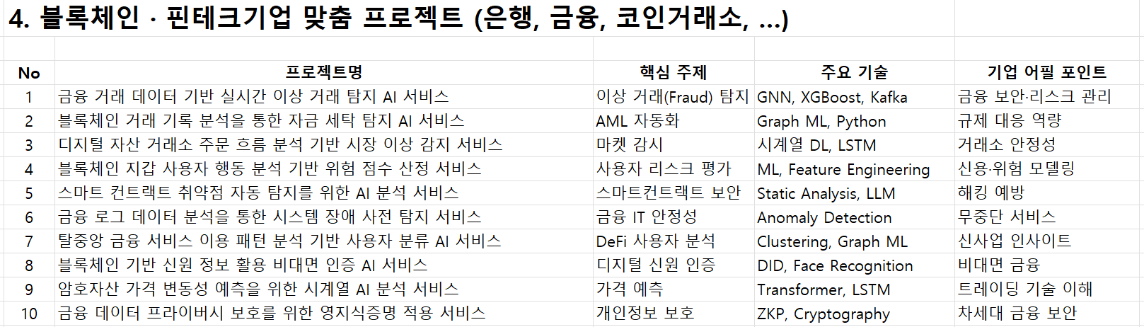 - 아래의 프로젝트들은 chatGPT 가 트랜드를 고려해 엄선한 샘플들입니다(2025.12기준).